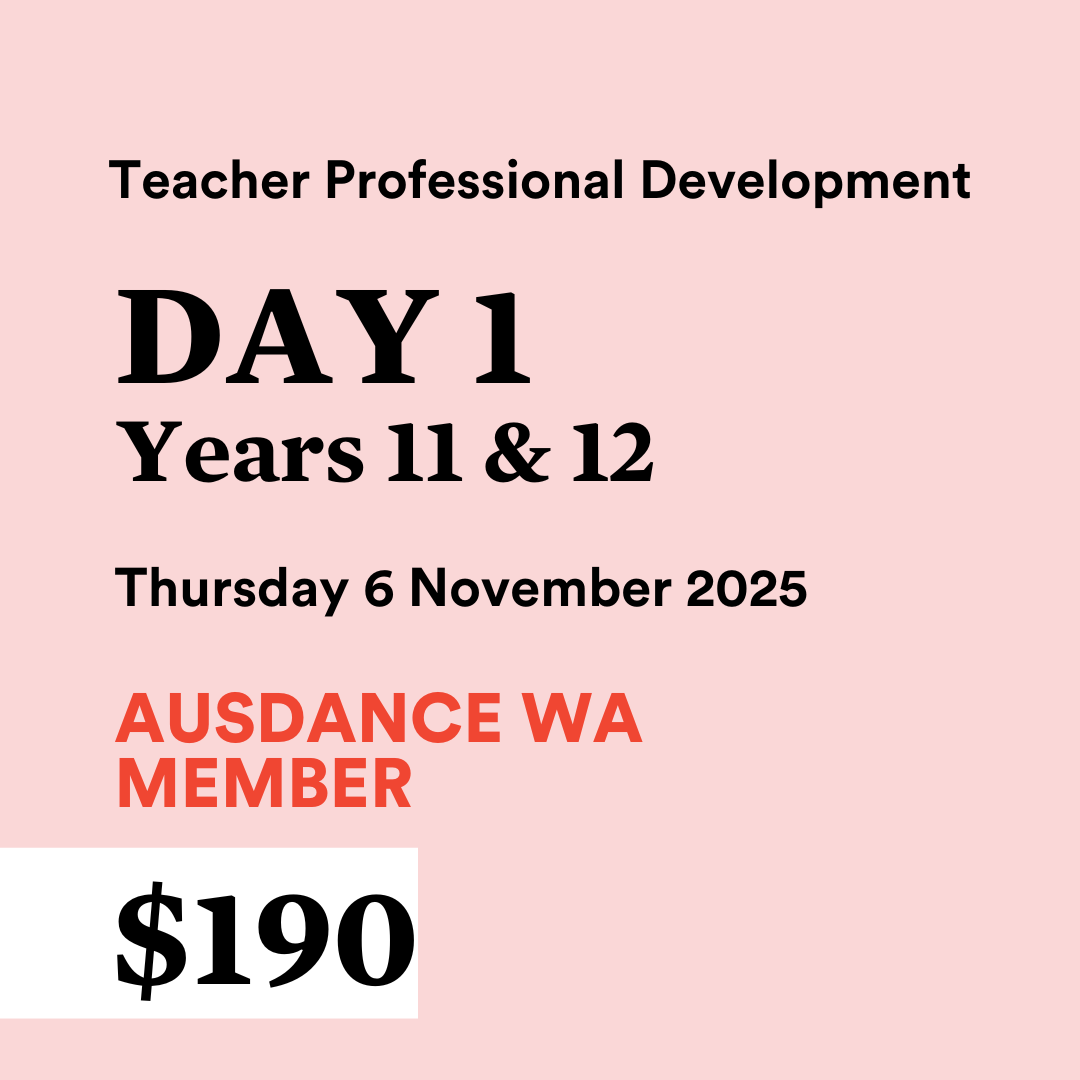 A dynamic day of dance exploration, curriculum insights, and choreographic inspiration aimed at Teachers of Years 11 & 12. Some workshops are aimed specifically at ATAR Dance, and others catering across ATAR, General and VET pathways as well.